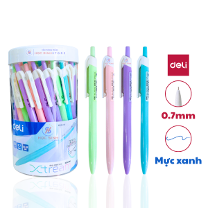 Bút Bi Bấm Q03336 Hiệu Deli Chất Lượng Cao Vỏ Màu Pastel, Ngòi 0.7mm Mực Xanh Viết Mượt, Êm Trơn