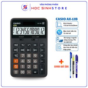 Máy Tính CASIO AX-12B Chính Hãng, Tích Hợp Nguồn 2 Chiều (Pin + Mặt Trời), Combo Quà Tặng Hấp Dẫn