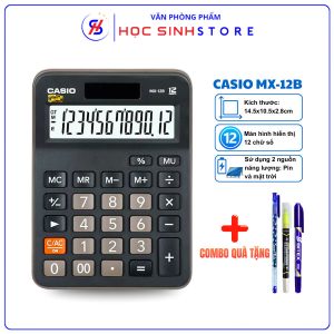 Máy Tính CASIO MX-12B-BK Chính Hãng, Tích Hợp 2 Nguồn (Pin + Mặt Trời), Combo Quà Tặng Hấp Dẫn