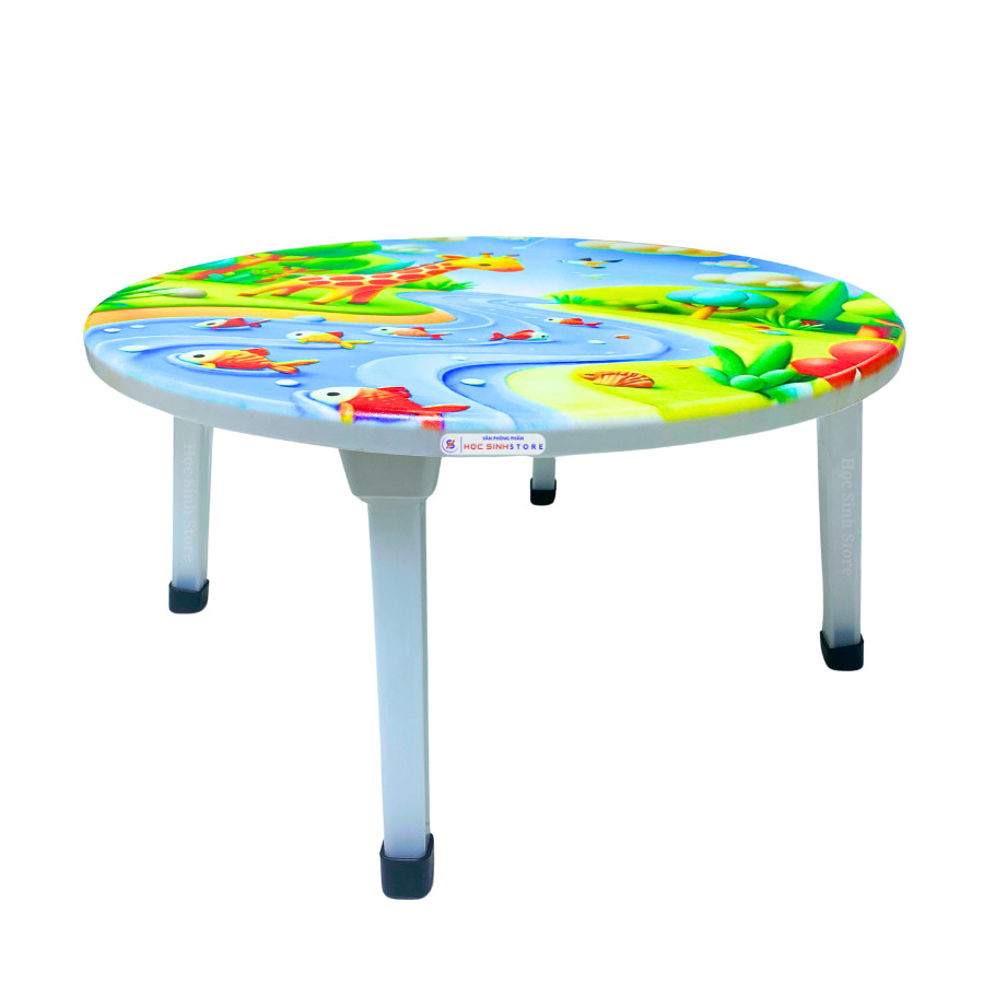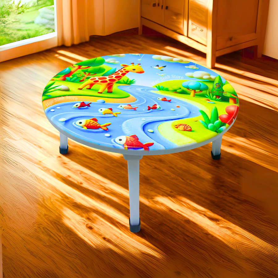 - Kích thước: Mặt bàn đường kính 56cm, Chân bàn cao 28cm