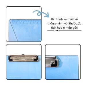 - Với thiết kế gọn nhẹ, chất liệu nhựa PS trong suốt và độ bền cao, sản phẩm không chỉ giúp bạn ghi chép, ký giấy tờ thuận tiện mà còn giữ cho tài liệu luôn phẳng phiu, sạch sẽ.