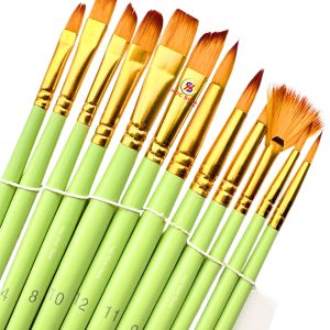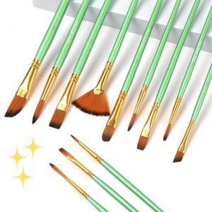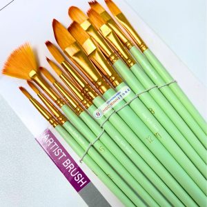 - Bộ gồm 12 cây cọ với các kích thước khác nhau giúp tô vẽ các đường nét khác nhau như vẽ nét mảnh, kẻ viền,…