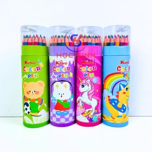 Bút chì màu được chứa trong lon nhựa tiện lợi