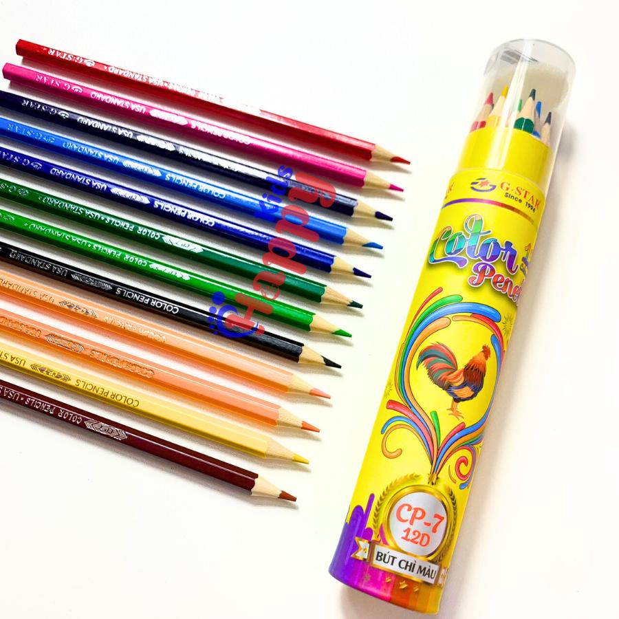 Bút Chì Màu Thân Dài, Vỏ Gỗ Lon Hình Con Gà CP7 Hiệu G-Star