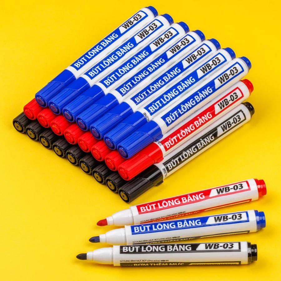 - Sử dụng mực mới, tốt, màu mực đậm, tươi sáng, dễ dàng xóa sạch ngay cả khi viết trên bảng lâu, không để lại bóng mực sau khi lau bảng và các bề mặt nhẵn bóng.