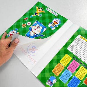 • Mặt trước của bìa: Được in nhãn Trường, Lớp, Tên, Tập, Năm học.