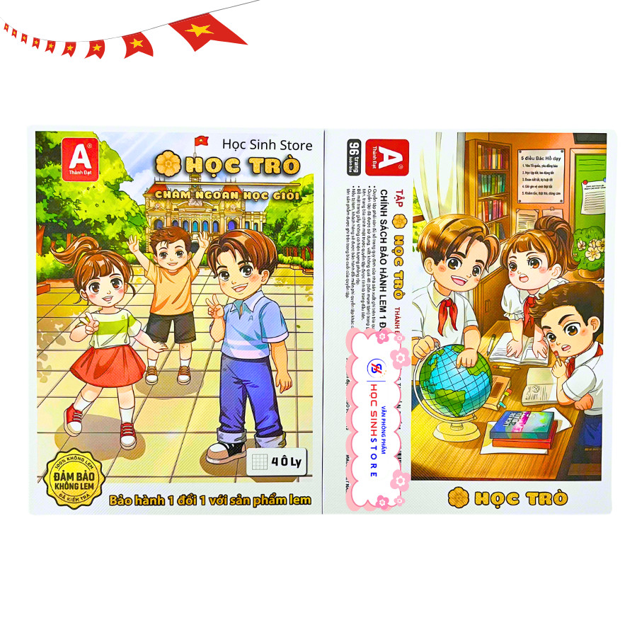 - Mặt trước của tập được in kèm chỗ viết nội dung như Trường, Lớp, Tên,… thay thế cho nhãn vở.