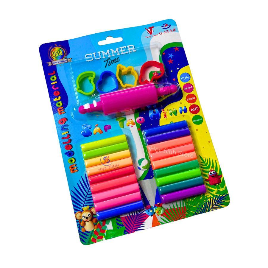 - Số lượng: 18 màu/ bộ, 4 khuôn tạo hình, 1 cây lăn.
