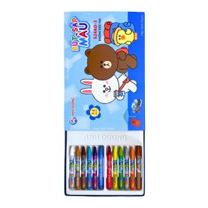 - Bút sáp màu được đựng trong vỏ hộp giấy cứng cáp, họa tiết trang trí đặc sắc phù hợp cho các bé nhỏ thích sự dễ thương.
