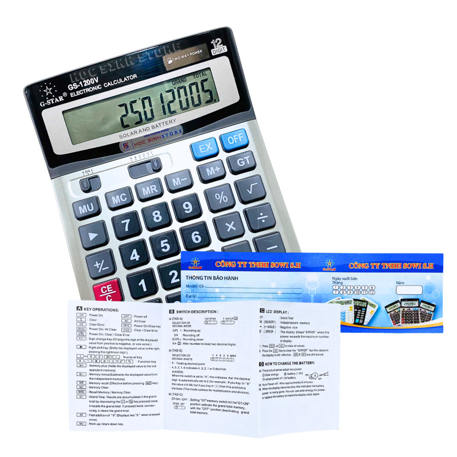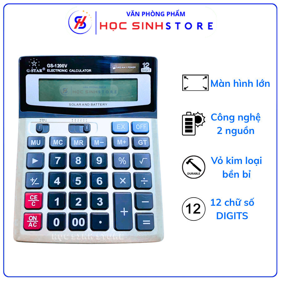 - Màn hình hiển thị rõ ràng: Màn hình lớn, hiển thị được 12 chữ số, giúp dễ dàng quan sát kết quả.