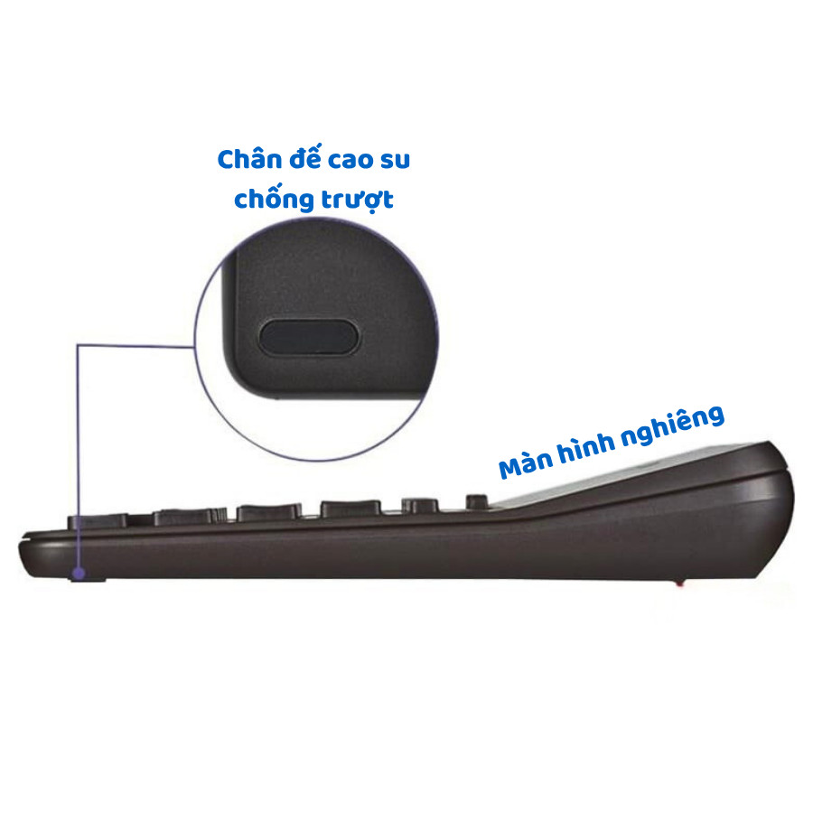 - Màn hình hiển thị 12 chữ số rõ ràng, độ nghiêng màn hình hợp lý giúp quan sát dễ dàng khi nhập và đọc dữ liệu.