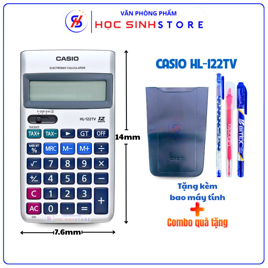 Máy tính Casio HL-122TV là dòng máy tính bỏ túi nhỏ gọn, thiết kế sang trọng với kích thước 14mm x 7.6mm, dễ dàng mang theo khi đi học, đi làm hay tính toán hằng ngày.