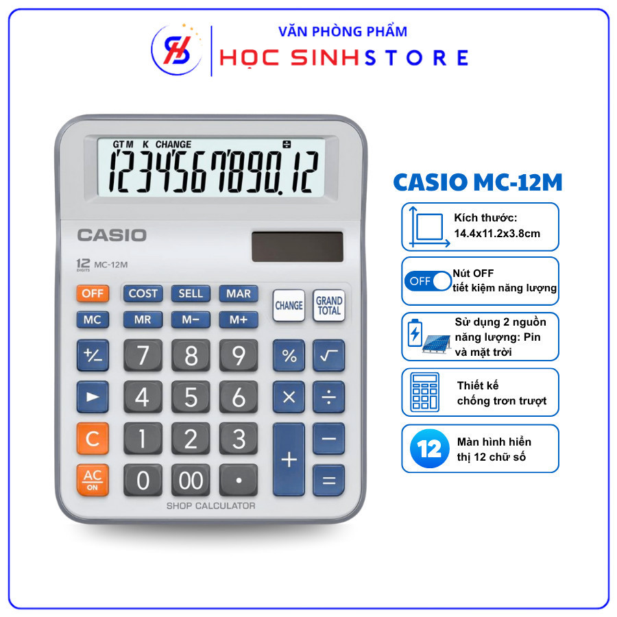 - Hiệu suất tính toán vượt trội: Casio MC-12M giúp thực hiện nhanh các phép tính phức tạp với độ chính xác cao, thích hợp cho học sinh, sinh viên và dân văn phòng.