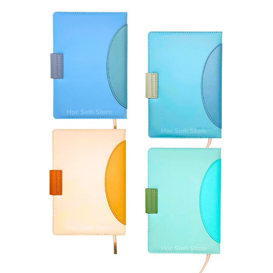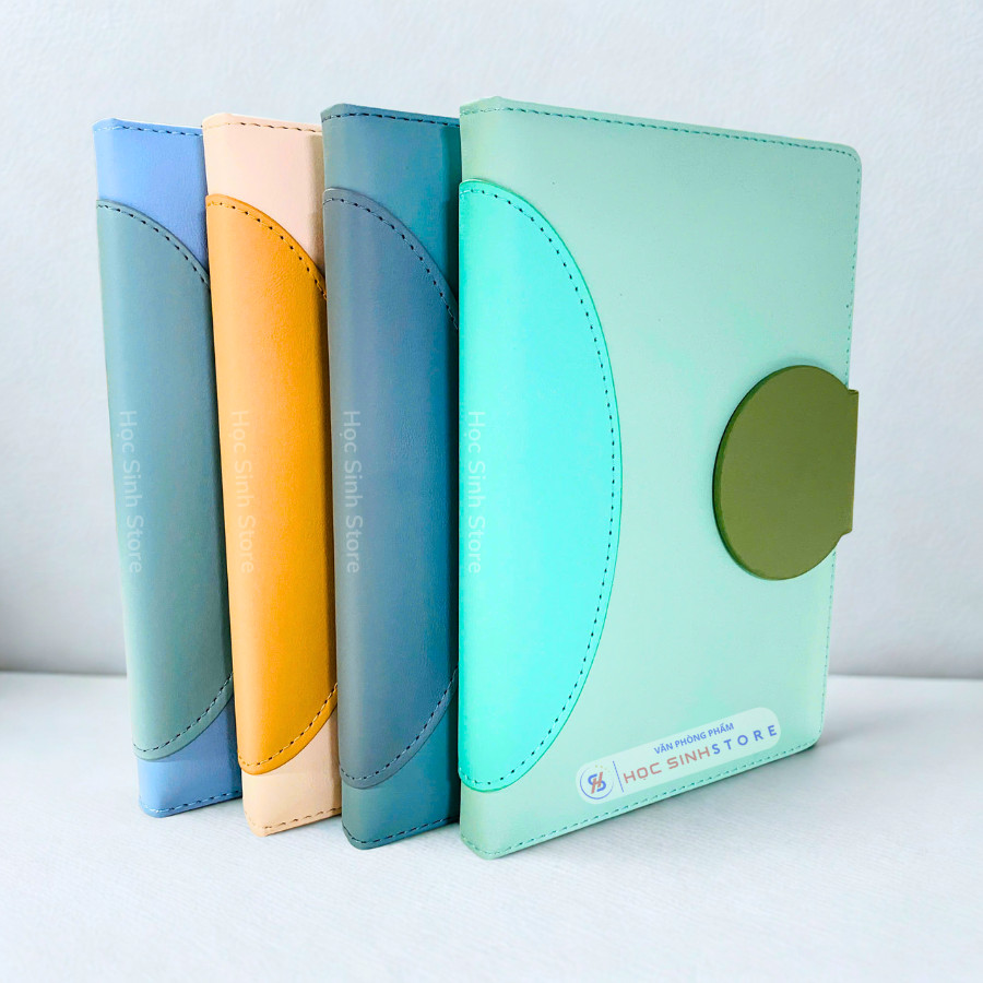• Bìa da mềm cao cấp: Chất liệu da PU dày dặn, bền chắc, chống thấm nhẹ, phối màu pastel thời thượng kết hợp khoá gài tròn độc đáo, tạo điểm nhấn ấn tượng.