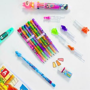Set 20 Cây Bút Gel Hình Thú – Mực Xanh, Tím Nhiều Mẫu Dễ Thương, Có Bịch Đựng Bút Dây Kéo Tiện Lợi