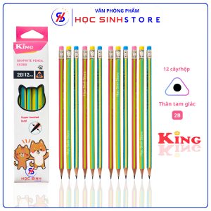 Hộp 12 Cây Bút Chì Gỗ 2B King K6368 Chất Lượng Cao, Màu Sắc Dễ Thương